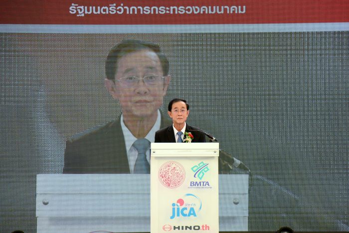 รัฐมนตรีว่าการกระทรวงคมนาคมเป็นประธานในพิธีส่งมอบรถโดยสารปรับอากาศชานต่ำ ระบบดีเซลและไฟฟ้า (Hybrid) แบรนฮีโน่ตามโครงการความร่วมมือJICA