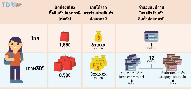 แต่เป็นที่น่าเสียดายว่า ประเทศไทยเสียโอกาสในการสร้างรายได้จากนักท่องเที่ยวจีน รายงานของ Euromonitor แสดงว่าในปี พ.ศ. 2559 นักท่องเที่ยวต่างชาติที่เดินทางเข้ามาในประเทศไทยใช้จ่ายกับการซื้อสินค้าปลอดภาษีเฉลี่ยเพียงหัวละ 47 ดอลลาร์สหรัฐ หรือ 1,550 บาทเท่านั้น เทียบกับเกาหลีใต้ที่สูงถึงหัวละ 260 ดอลลาร์สหรัฐ หรือ 8,580 บาท มากกว่าไทยถึงกว่า 5 เท่า ทำให้เกาหลีใต้มีรายได้จากการจำหน่ายสินค้าปลอดภาษีถึงกว่า 3 แสนล้านบาท ในขณะที่ประเทศไทยมีรายได้เพียง 6 หมื่นกว่าล้านบาทเท่านั้น