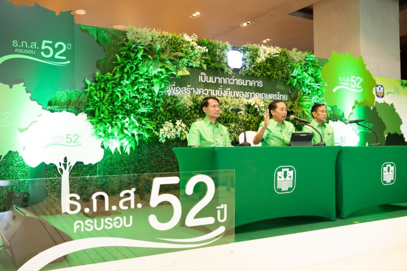 ธ.ก.ส.ครบรอบ 52 ปี เส้นทางสู่ความยั่งยืน นำยุทธศาสตร์ชาติ พัฒนาภาคการเกษตร มุ่งพัฒนาเกษตรกร ชุมชนและสังคม ควบคู่กับการดูแลสิ่งแวดล้อม โดยสนับสนุนระบบสหกรณ์ และ SMAEs เป็นหัวขบวนในการสร้างมูลค่าเพิ่มผลผลิตทางการเกษตร และเสริมช่องทางการตลาดทุกรูปแบบ
