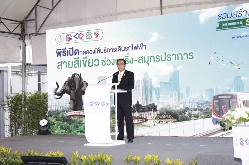 นายกรัฐมนตรีกดปุ่มเปิดทดลองให้บริการเดินรถไฟฟ้าสายสีเขียว ช่วงแบริ่ง-สมุทรปราการ