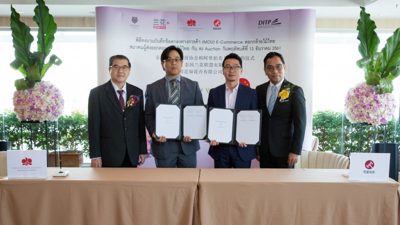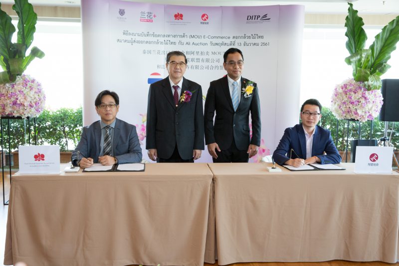 นายพรชัย ตระกูลวรานนท์ ที่ปรึกษารองนายกรัฐมนตรีและที่ปรึกษารัฐมนตรีว่าการกระทรวงพาณิชย์ ร่วมเป็นสักขีพยานการลงนามความร่วมมือระหว่างสมาคมผู้ส่งออกดอกกล้วยไม้ไทย และ Ali Auction ซึ่งเป็นแพลตฟอร์มประมูลออนไลน์ ภายใต้อาลีบาบากรุ๊ป ในเครืออาลีบาบากรุ๊ป เพื่อเร่งผลักดันดอกกล้วยไม้ไทยสู่ตลาดจีนผ่านการขายในระบบอีคอมเมิร์ซ ภายหลังร่วมเป็นสักขีพยานในการลงนามบันทึกความร่วมมือ (เอ็มโอยู) ว่ากระทรวงพาณิชย์วางแผนการขยายช่องทางการค้าดอกกล้วยไม้ ไปยังตลาดจีนผ่านช่องทางอีคอมเมิร์ซ ที่เกิดขึ้นจากความร่วมมือระหว่างสมาคมผู้ส่งออกดอกกล้วยไม้ไทย และ Ali Auction ซึ่งเป็นแพลตฟอร์มการประมูลออนไลน์ที่ใหญ่ที่สุดของจีนสำหรับทั้ง ผู้ขายส่งและผู้บริโภค โดยเป็นผลจากความร่วมมือระหว่างกระทรวงพาณิชย์กับกลุ่มอาลีบาบาในการส่งเสริมผลิตภัณฑ์ทางการเกษตรของไทยสู่ตลาดจีนและสร้างนวัตกรรมทางการเกษตรผ่านช่องทางดิจิทัล ซึ่งเป็นส่วนหนึ่งของความร่วมมือระหว่างรัฐบาลไทยและอาลีบาบากรุ๊ปที่เริ่มขึ้นตั้งแต่เดือนเมษายน ปี พ.ศ. 2561 เพื่อพัฒนาการเศรษฐกิจไทยในยุคดิจิทัล