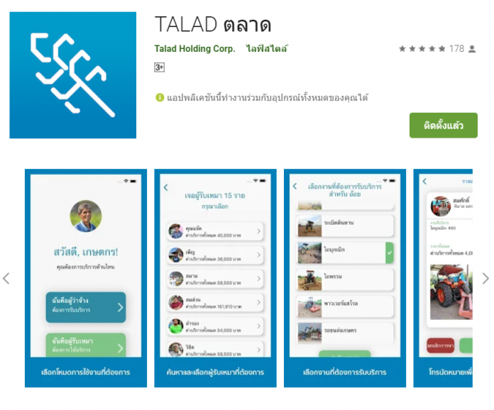 นายมาณพ ฐาปน ผู้ร่วมก่อตั้งและประธานฝ่ายปฏิบัติการ บริษัท ตลาด โฮลดิ้ง คอร์เปอเรชั่น จำกัด กล่าวว่า เพื่อยกระดับเกษตรกรไทยโดยใช้เทคโนโลยีให้ก้าวทันยุคสมัยและไปได้ไกลในยุคของการทำการเกษตรกรรมแบบดิจิทัล ทางบริษัท จึงได้พัฒนาแอปพลิเคชั่นที่ชื่อ “ตลาด” ขึ้นครั้งแรกในประเทศไทย เพื่อเป็นศูนย์กลางการนัดพบระหว่าง เกษตรกรและผู้รับเหมาจ้างงาน ให้เจอกันผ่านทางแอปพลิเคชั่น ได้อย่างสะดวกรวดเร็วโดยไม่มีค่าใช้จ่าย เพื่อช่วยเพิ่มงานของทั้ง ผู้รับเหมา (ผู้มีแรงงาน มีรถไถและอุปกรณ์ทางการเกษตร)และเกษตรกร(ผู้ที่มีงานหลากหลายรูปแบบแต่ขาดแคลนแรงงานหรืออุปกรณ์) ให้มีประสิทธิภาพ มากยิ่งขึ้น
