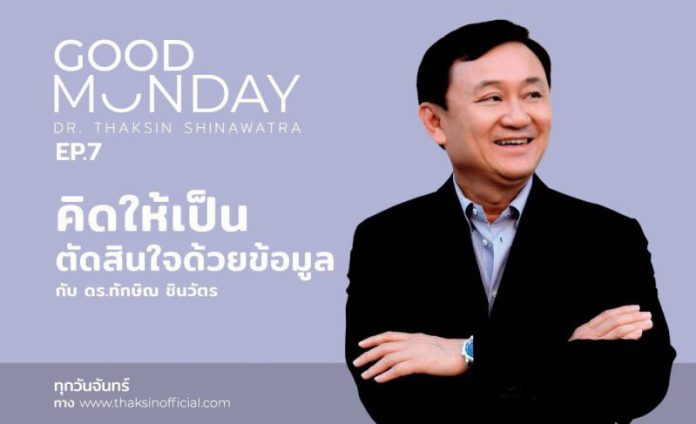 “ทักษิณ” Good Monday EP.7 “คิดให้เป็น ตัดสินใจด้วยข้อมูล” ชูวิธีคิดคือหัวใจสำคัญ ต้องคิดเป็นวิทยาศาสตร์ มีคำตอบทางวิทยาศาสตร์ พิสูจน์ได้และเป็นวิทยาศาสตร์