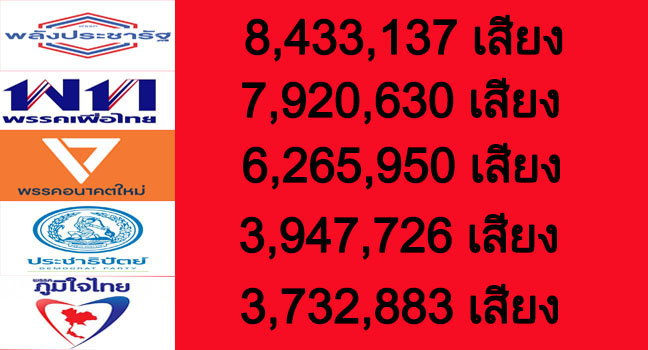 สำหรับ 5 พรรคอันดับแรก มีดังนี้