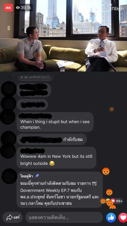 และในเวลาต่อมา “เพจไทยคู่ฟ้า” ได้ถ่ายทอด ไลฟ์สด พล.อ.ประยุทธ์ จากนครนิวยอร์ค ผ่านเพสบุ๊ค ซึ่งเป็นการจัดรายการ “นายกฯ คุยกับประชาชน” เป็นครั้งแรก โดยมีชาวโซเชียลออกมาจับผิดถึงห้วงเวลาของการไลฟ์สด พร้อมตั้งคำถามว่าเป็นการไลฟ์สดจริงหรือไม่? โดยตั้งคำถามถึง แสงอาทิตย์ที่เกิดขึ้นด้านหลังของนายกฯ เพราะจากโปรแกรมที่แจ้งการไลฟ์สด เป็นช่วงเวลา 15.00 น. (ของวันนี้ 27 ก.ย.62) ในประเทศไทย แต่เวลาในสหรัฐฯจะเป็นช่วงเวลาประมาณ ตีสามถึงตีสี่ (03.00-04.00น.) ซึ่งยังไม่น่าจะมีแสงอาทิตย์
