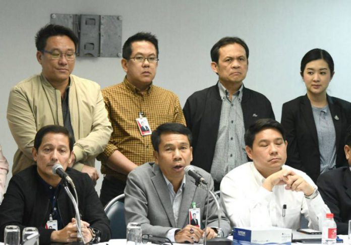 ที่พรรคเพื่อไทย ตัวแทนวิปฝ่ายค้าน นำโดย นายสุทินคลังแสง ส.ส. มหาสารคาม พรรคเพื่อไทย ในฐานะประธานวิปฝ่ายค้าน น.อ.อนุดิษฐ์ นาครทรรพ เลขาธิการพรรคเพื่อไทย ในฐานะที่ปรึกษาวิปฝ่ายค้าน น.พ.ชลน่าน ศรีแก้ว ส.ส.น่านพรรคเพื่อไทย ในฐานะคณะกรรมการวิปฝ่ายค้าน นายนิคม บุญวิเศษ หัวหน้าพรรคพลังปวงชนไทย น.ส. ศิริกันยา ตันสกุล ส.ส.พรรคบัญชีรายชื่อพรรคอนาคตใหม่ นายสุภดิชอากาศฤกษ์ รองหัวหน้าพรรคเศรษฐกิจใหม่ ฯลฯ ร่วมแถลงภายหลังการประชุม