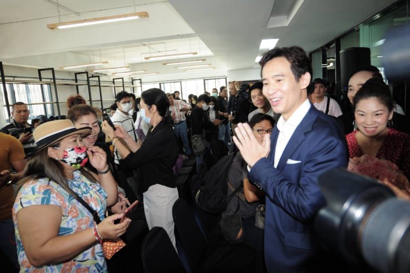 เมื่อถามว่า มั่นใจว่า 55 คน จะไปอยู่พรรคใหม่ นายพิธา กล่าวว่า มั่นใจที่ทุกคนมายืนอยู่ข้างหลังตน เป็นกำแพงชั้นแรก ทำให้ตนมีความมั่นใจและความตื่นเต้นในการทำงาน กำแพงชั้นที่สอง คือประชาชนที่ทั้งเลือกและไม่ได้เลือกเรามา ประเทศไทยช่วงนี้เป็นความท้าทายในทศวรรษนี้ของศตวรรษนี้ ดังนั้น ส.ส.ที่เหลืออยู่และประชาชนที่เฝ้าดูพวกเขาอยู่อีกทีจะมองในทิศทางเดียวกันว่าเราควรมีความสามัคคีกัน และทำงานให้สมกับภาษีที่ประชาชนเลือกเรามา