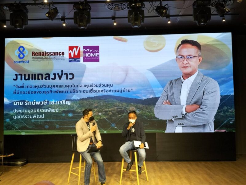 “ความร่วมมือในวันนี้ถือเป็นการเดินตามแผนงานเข้าใกล้เป้าหมายอีกขั้น ในการสร้างนวัตกรรมทางเทคโนโลยีและนวัตกรรมทางการเงินที่จะนำไปสู่การสร้างเศรษฐกิจหมุนเวียนระหว่างเครือข่ายหมู่บ้านของประเทศไทยได้ เนื่องด้วยปัจจุบันสภาพคล่องในระบบเศรษฐกิจระดับฐานรากหรือระดับหมู่บ้านนั้นหายไปจากระบบ จนทำให้ผู้คนส่วนใหญ่ของประเทศต้องพบกับความเดือนร้อนในการทำมาหากินและดำรงชีวิต เนื่องจากเม็ดเงินนั้นยังกระจกตัวอยู่กับเอกชนขนาดใหญ่ ซึ่งขณะนี้เอกชนขนาดใหญ่เองก็ไม่กล้าที่จะนำเม็ดเงินดังกล่าวมาลงทุน เนื่องจากกลัวความเสี่ยงและความไม่คุ้มค่าจากกำลังซื้อที่หดหายไปจากระบบ ในการนี้ทางมูลนิธิรวมพัฒน์ จึงได้ร่วมกับ บลจ.เรนเนสซานซ์ เพื่อจัดตั้ง “กองทุนส่วนบุคคลลงทุนในกองทุนร่วมส่วนทุนที่มีกองย่อยของธุรกิจพัฒนาบล็อกเชนเชื่อมเครือข่ายหมูบ้าน (Private Fund Feeder to Private Equity Fund for A Sector of Developing Village Network Blockchain)” เพื่อใช้เป็นกลไกในการรวบรวมและบริหารจัดการเงินลงทุนมูลค่าขั้นต้นกว่า 5,000 ล้านบาท จากบริษัท ผู้ลงทุนรายใหญ่พิเศษ และสถาบันชั้นนำ ที่มีความพร้อมและความสนใจในการพัฒนานวัตกรรมบล็อกเชนเชื่อมเครือข่ายหมู่บ้าน โดยกองทุน Private Equity ในต่างประเทศที่พัฒนาแล้ว เช่น สิงคโปร์ มีเป้าหมายในการสร้างอัตราผลตอบแทนให้กับผู้ลงทุนได้เฉลี่ยสูงถึงร้อยละ 18 ต่อปี อีกทั้งยังสามารถขายคืนหน่วยลงทุนได้หลังจาก 3 ปี (Lock Up Period)