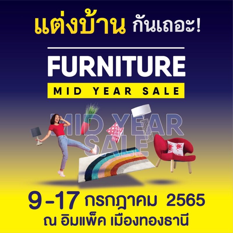 1.งาน Furniture Mid Year Sale งานที่รวมเฟอร์นิเจอร์ทุกรูปแบบ มีการเพิ่มจำนวนผู้ประกอบการ จากเดิม 60-70 บริษัทชั้นนำ เป็น 90-100 ราย เพิ่มขึ้น 20% ซึ่งบริษัท แบรนด์เฟอร์นิเจอร์ชั้นนำรายใหม่ ที่เข้าร่วมการจัดงานในครั้งนี้ ประกอบไปด้วย เฟอร์นิเจอร์ชุดรับแขก, ชุดห้องนอน, ชุดรับประทานอาหาร, ชุดสำนักงาน, ชุดห้องครัว และสิ่งอำนวยความสะดวกภายในบ้าน โดยงานดังกล่าวผู้ประกอบการต่างนำสินค้ามาลดราคาสูงสุด 80%
