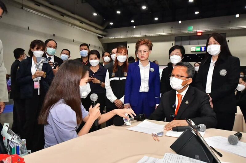 ในการจัดงานมหกรรมไกล่เกลี่ยหนี้สินครัวเรือนและหนี้ SMEs โดยมี นายวิษณุ เครืองาม รองนายกรัฐมนตรี เป็นประธานเปิดงาน พร้อมด้วย นายสมศักดิ์ เทพสุทิน รมว.ยุติธรรม นางพงษ์สวาท กายอรุณสุทธิ์ ปลัดกระทรวงยุติธรรม ว่าที่ร.ต.ธนกฤต จิตรอารีย์รัตน์ เลขานุการ รมว.ยุติธรรม น.ส.ณัฐธ์ภัสส์ ยงใจยุทธ ผู้ช่วย รมว.ยุติธรรม นายชื่นชอบ คงอุดม ผู้ช่วย รมว.คลัง นางทัศนีย์ เปาอินทร์ อธิบดีกรมบังคับคดี นายเรืองศักดิ์ สุวารี อธิบดีกรมคุ้มครองสิทธิและเสรีภาพ ผู้บริหาร ข้าราชการและเจ้าหน้าที่เข้าร่วมงาน โดยมีการตรวจคัดกรองโควิด-19 ก่อนเข้างานอย่างเข้มงวด