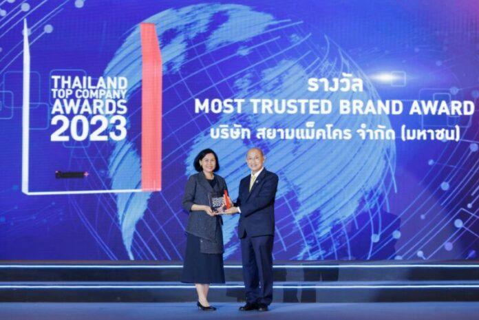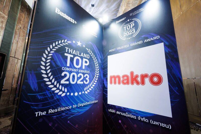 แม็คโครรับรางวัลจากเวที Thailand Top Company Awards 2023 ประเภท MOST TRUSTED BRAND สุดยอดองค์กรธุรกิจไทย ที่สร้างแบรนด์ได้แข็งแกร่งจนได้รับการยอมรับทั้งทางด้านคุณภาพ และบริการ มอบประสบการณ์ที่ดีให้กับลูกค้า สะท้อนความสำเร็จของแบรนด์ “แม็คโคร” ที่เข้าไปอยู่ในใจของลูกค้าทุกกลุ่ม โดยน.ส.ธัญมาส วรชาติ ประธานเจ้าหน้าที่บริหาร – กลุ่มธุรกิจค้าส่งแม็คโคร สายงาน Group Shared Service เป็นตัวแทนรับรางวัล ซึ่งการมอบรางวัลครั้งนี้ได้รับเกียรติจาก ฯพณฯ ศาสตราจารย์เกียรติคุณ นายแพทย์เกษม วัฒนชัย เป็นผู้มอบ ณ โรงแรมอินเตอร์คอนติเนนตัล กรุงเทพฯ