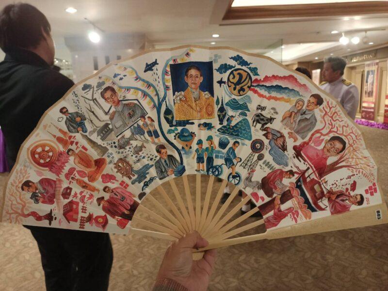 ทั้งนี้ มีผลงานศิลปะวาดภาพบนพัดจีบกว่า 200 ชิ้นผลงานจาก 10 โรงเรียนชั้นนำได้แก่ 1.โรงเรียนสวนกุหลาบวิทยาลัย 2.โรงเรียนสามเสนวิทยาลัย 3.โรงเรียนโยธินบูรณะ 4.โรงเรียนวัดสุทธิวราราม 5.โรงเรียนสาธิตมหาวิทยาลัยศิลปากร 6.โรงเรียนสตรีมหาพฤฒาราม 7.โรงเรียนไตรมิตรวิทยาลัย 8.โรงเรียนสตรีศรีสุริโยทัย 9.โรงเรียน เตรียมอุดมศึกษาพัฒนาการ รัชดา 10.โรงเรียนสุรศักดิ์มนตรี