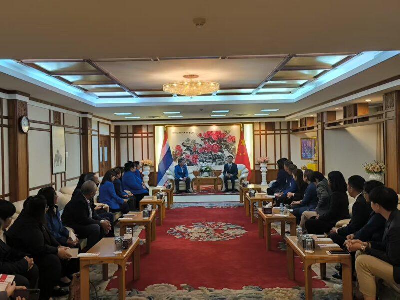 ดร.กำพล มหานุกูล นายกสมาคมผู้สื่อข่าวไทย-จีน พร้อมด้วย ผศ.สืบพงษ์ ปราบใหญ่ นางสาวคันธรส หาญไชยพิบูลย์กุล นางสาวสายชล เกียรติกังวาฬไกล นายศุภชัย กฤตผลชัย นำคณะผู้แทนซึ่งประกอบด้วยสื่อมวลชน นักวิชาการ และผู้เรียนหลักสูตรของสมาคมฯ เข้าพบนายเจ้า เมิ่งเทา ที่ปรึกษาสถานเอกอัครราชทูตจีน ณ สถานเอกอัครราชทูตจีน กรุงเทพฯ เพื่อรับฟังคำแนะนำและรายงานตัวก่อนเดินทางไปศึกษาดูงานด้านสื่อ การพัฒนา และวัฒนธรรม ณ กรุงปักกิ่ง และเขตปกครองตนเองกว่างสีจ้วง ระหว่างวันที่ 26 เมษายน ถึง 12 พฤษภาคม 2568 ซึ่งมีผู้เดินทางในครั้งนี้ทั้งหมด 27 ท่าน