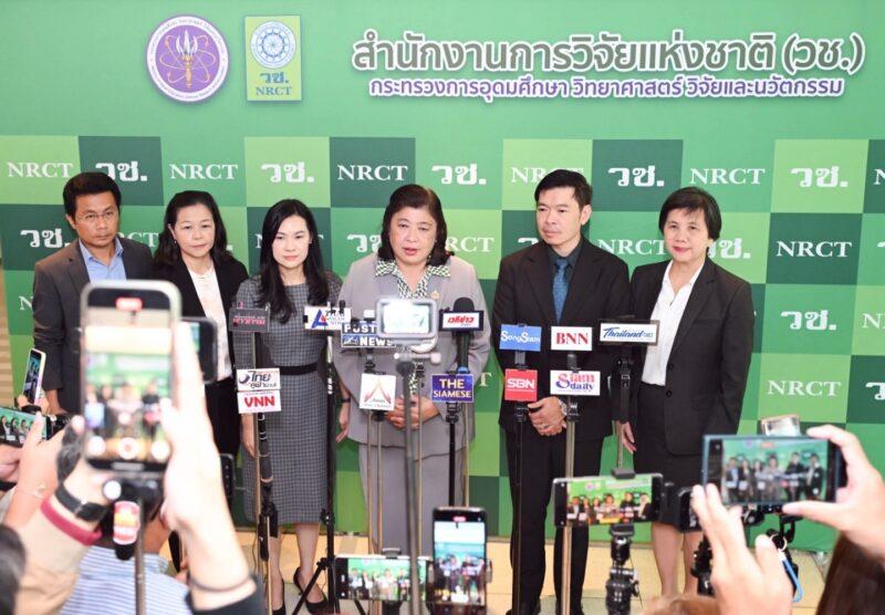 สำนักงานการวิจัยแห่งชาติ(วช.) กระทรวงการอุดมศึกษา วิทยาศาสตร์ วิจัยและนวัตกรรม จัดงานแถลงข่าว “ผลการสำรวจข้อมูลด้านการวิจัยและพัฒนาของประเทศไทย ปี 2567” โดยมี ดร.วิภารัตน์ ดีอ่อง ผู้อำนวยการสำนักงานการวิจัยแห่งชาติ เป็นประธาน พร้อมด้วย ดร.กรัณฑรัตน์ นาขวา ผู้ช่วยผู้อำนวยการสำนักงานสภานโยบายการอุดมศึกษา วิทยาศาสตร์ วิจัยและนวัตกรรมแห่งชาติ รองศาสตราจารย์ ดร.คมกฤต เล็กสกุล รองผู้อำนวยการสำนักงานคณะกรรมการส่งเสริมวิทยาศาสตร์ วิจัยและนวัตกรรม ร่วมให้ข้อมูลในประเด็น “นโยบายการขับเคลื่อน ววน. เพื่อเพิ่มขีดความสามารถในการแข่งขันของประเทศ” ณ ศูนย์สารสนเทศกลางด้านวิทยาศาสตร์ วิจัยและนวัตกรรม อาคาร วช. 8