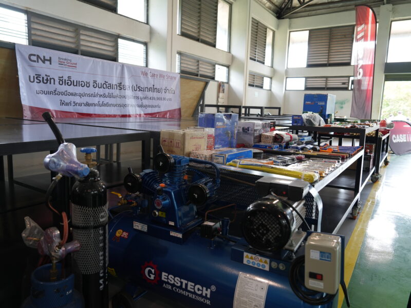 นอกจากการส่งมอบรถตัดอ้อย Austoft 4000 ซึ่งมอบให้กับวิทยาลัยฯ ไปเมื่อปี พ.ศ.2566 เพื่อใช้เป็นสื่อการเรียนรู้เชิงปฏิบัติแล้ว ในปีนี้ ซีเอ็นเอชได้มอบเครื่องมือและอุปกรณ์เวิร์กชอปกว่า 100 รายการ อาทิ เครื่องมือวัดความแม่นยำสูง เครื่องมือวิเคราะห์ และโต๊ะปฏิบัติงานสำหรับการเรียนรู้เกี่ยวกับอุตสาหกรรม นอกจากนี้ นักศึกษาจากวิทยาลัยฯ และสถาบันที่เน้นการศึกษาด้านการเกษตรยังมีโอกาสเข้าร่วมฝึกงานกับซีเอ็นเอช ประเทศไทย เพื่อเพิ่มพูนประสบการณ์จริงในภาคสนาม