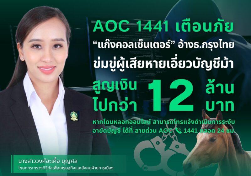 หากประชาชนโดนหลอกออนไลน์ โทรแจ้งดำเนินการ ระงับ อายัดบัญชี AOC 1441