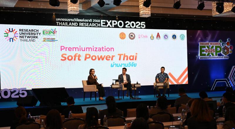 นอกจากนี้ ยังมีการจัดเสวนาในหัวข้อ “RUN for Soft Power” โดยแบ่งออกเป็น 3 หัวข้อย่อยที่น่าสนใจ ได้แก่ หัวข้อ “Premiumization Soft Power Thai ผ่านงานวิจัย” โดย คุณนิติพันธุ์ ดารกานนท์ ประธานบริษัท Sonite Innovative Surfaces และรองศาสตราจารย์ ดร.ชาคร ประพรหม มหาวิทยาลัยสงขลานครินทร์ วิทยาเขตปัตตานี ได้นำเสนอแนวทางการพัฒนานวัตกรรมที่ผสมผสานภูมิปัญญาท้องถิ่นกับเทคโนโลยีสมัยใหม่ เพื่อสร้างผลิตภัณฑ์และบริการที่มีเอกลักษณ์ สามารถแข่งขันได้ในระดับสากล การต่อยอดงานวิจัยในเชิงพาณิชย์ช่วยยกระดับคุณภาพชีวิตของชุมชน พร้อมส่งเสริมภาพลักษณ์และมูลค่าทางเศรษฐกิจของประเทศในเวทีโลก