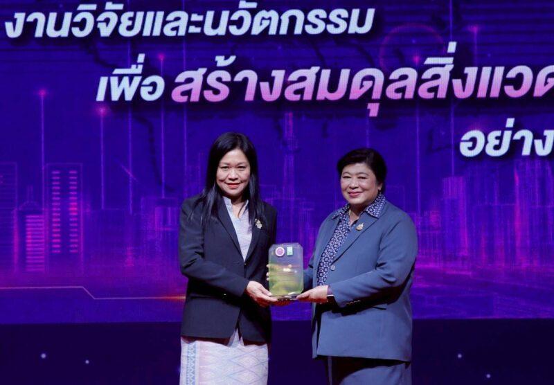 โอกาสนี้ ดร.ปริยะดา วิสุทธิแพทย์ ผอ.สำนักสื่อสารองค์กร ในฐานะผู้แทน วว. เข้ารับโล่ขอบคุณจาก ดร.วิภารัตน์ ดีอ่อง ผู้อำนวยการ สำนักงานการวิจัยแห่งชาติ ในการที่ วว. เป็นหน่วยงานภาคีเครือข่ายซึ่งนำ 11 ผลงานวิจัยและนวัตกรรมเข้าร่วมจัดแสดงนิทรรศการในครั้งนี้ด้วย (วันที่ 20 มิ.ย. 2568 ณ โรงแรมเซ็นทาราแกรนด์ฯ เซ็นทรัลเวิลด์)