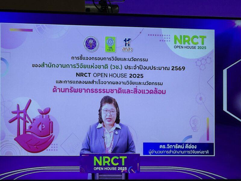 สำนักงานการวิจัยแห่งชาติ(วช.) กระทรวงการอุดมศึกษา วิทยาศาสตร์ วิจัยและนวัตกรรม จัดกิจกรรมเปิดบ้านชี้แจงกรอบการวิจัยและนวัตกรรม ประจำปีงบประมาณ 2569 (NRCT Open House 2025) และการแถลงผลสำเร็จจากผลงานวิจัยและนวัตกรรม “ด้านทรัพยากรธรรมชาติและสิ่งแวดล้อม” โดยมี ดร.วิภารัตน์ ดีอ่อง ผู้อำนวยการสำนักงานการวิจัยแห่งชาติ เป็นประธานเปิดงาน