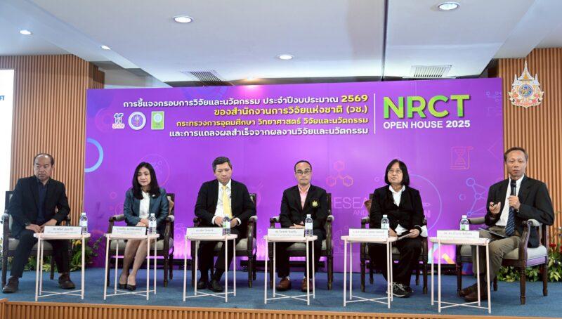 NRCT Open House 2025 เปิดบ้านชี้แจงกรอบการวิจัยและนวัตกรรม ประจำปีงบประมาณ 2569 พร้อมการแถลงผลสำเร็จจากผลงานวิจัยและนวัตกรรม ได้ดำเนินมาอย่างต่อเนื่องตลอด 9 วัน โดยการชี้แจงตลอดช่วงเวลาดังกล่าวเพื่อสร้างความเข้าใจถึงแนวทางการให้ทุนสนับสนุนงานวิจัยในแต่ละมิติ ตลอดจนถ่ายทอดผลสัมฤทธิ์จากการดำเนินงานวิจัยที่ผ่านมา ทั้งในด้านกรอบแนวคิด หลักเกณฑ์ และเป้าประสงค์เชิงยุทธศาสตร์ของการให้ทุนตลอดจนเปิดโอกาสให้ผู้เข้าร่วมได้แลกเปลี่ยนเรียนรู้และซักถามประเด็นเชิงวิชาการและการปฏิบัติ อันจะนำไปสู่การยกระดับคุณภาพข้อเสนอการวิจัยในอนาคต