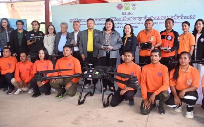 ดร.วิภารัตน์ ดีอ่อง ผู้อำนวยการสำนักงานการวิจัยแห่งชาติ กล่าวว่า การนำวิทยาศาสตร์ เทคโนโลยี และนวัตกรรม โดยสนับสนุนการจัดตั้ง “ศูนย์ศึกษาและพัฒนาระบบการใช้โดรนเพื่อสนับสนุนเมื่อเกิดภัยพิบัติ” ณ ตำบลเกาะขันธ์ อำเภอชะอวด จังหวัดนครศรีธรรมราช ในครั้งนี้ จึงเป็นก้าวสำคัญในการบูรณาการเทคโนโลยีโดรนกับระบบการจัดการภัยพิบัติ ศูนย์แห่งนี้จะทำหน้าที่เป็นแหล่งเรียนรู้ ทดสอบ พัฒนาระบบโดรนและสนับสนุนการกู้ภัยในภาวะวิกฤต จากสถานการณ์ภัยพิบัติที่เกิดขึ้นในช่วงฤดูมรสุม รวมทั้งมีการฝึกอบรมการใช้เทคโนโลยีโดรนเพื่อเฝ้าระวังและสำรวจพื้นที่เสี่ยงภัย เพื่อวางแผนและเตือนภัยล่วงหน้าเสริมสร้างระบบการตอบสนองฉุกเฉินระดับชุมชนอย่างรวดเร็วและแม่นยำ รวมถึงสนับสนุนส่งเสริมให้ประชาชนมีส่วนร่วมในการบริหารจัดการภัยพิบัติอย่างยั่งยืน