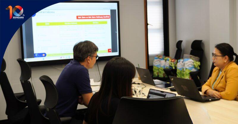 นางสาวสุดารัตน์ มีชัย ESG & Sustainability Manager และ นางสาวนีรนารา สุขลังการ Senior Corporate Communication Officer บริษัท เสริมสร้าง พาวเวอร์ คอร์ปอเรชั่น จำกัด (มหาชน) ให้การต้อนรับ นายจิรวัตร จิรจริยาเวช และนางสาวพิชชาพร ทองสีเหลือง ผู้เชี่ยวชาญเฉพาะด้านพลังงานเชิงนิเวศ (Center of Excellence for Eco-Energy: CEEE) ภาควิชาวิศวกรรมเคมี คณะวิศวกรรมศาสตร์ มหาวิทยาลัยธรรมศาสตร์ เพื่อให้คำปรึกษาเชิงลึกภายใต้โครงการ CALO ในการถ่ายทอดความรู้เชิงเทคนิค วิเคราะห์โครงสร้างองค์กร วางแนวทางจัดทำบัญชีคาร์บอนองค์กร (Carbon Footprint of Organization: CFO) และวางรากฐานการกำหนดเป้าหมายลดการปล่อยก๊าซเรือนกระจกในอนาคตอย่างมีประสิทธิภาพ โดยมีผู้เข้าร่วมกิจกรรมจากกลุ่มบริษัทฯจำนวน 18 คน จากสายงานต่างๆ ได้แก่ สายบริหารองค์กรและสนับสนุน, สายงานปฏิบัติการและบำรุงรักษา และสายงานวิศวกรรมและบริหารโรงไฟฟ้า เพื่อร่วมวางแนวทางที่สามารถต่อยอดไปสู่การกำหนดเป้าหมาย การลดคาร์บอนที่สามารถตรวจสอบได้และวัดผลได้จริง