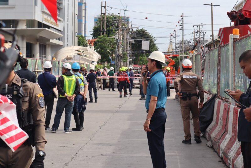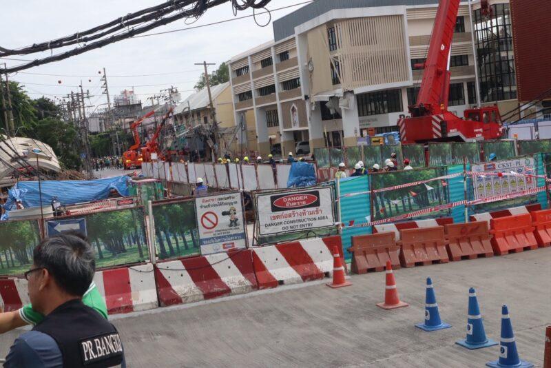 โดยในเบื้องต้น ผู้ว่าการ รฟม. พร้อมด้วยผู้อำนวยการโครงการรถไฟฟ้าสายสีม่วงฯ และทีมงาน ได้สั่งการให้หยุดการก่อสร้างบริเวณพื้นที่เกิดเหตุในทันที เพื่อตรวจสอบหาสาเหตุ พร้อมทั้งปิดกั้นพื้นที่ก่อสร้างบางส่วน และอพยพประชาชนโดยรอบออกจากพื้นที่เพื่อความปลอดภัย
