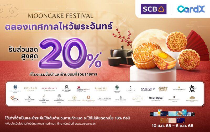 CardX ร่วมสืบสานเทศกาลไหว้พระจันทร์สุดยิ่งใหญ่ เปิดแคมเปญพิเศษ “Mooncake Festival 2025” เพื่อมอบสิทธิประโยชน์ที่เหนือระดับแก่สมาชิกบัตรเครดิต CardX ด้วยส่วนลดสูงสุด 20%* สำหรับการซื้อขนมไหว้พระจันทร์จากโรงแรมชั้นนำและร้านขนมที่ร่วมรายการกว่า 24 แบรนด์ดัง ตอบโจทย์ทั้งกลุ่มที่ซื้อเป็นของขวัญมอบแก่ผู้ใหญ่และคู่ค้า รวมถึงคนรุ่นใหม่ที่ต้องการฉลองเทศกาลกับครอบครัวหรือค้นหารสชาติใหม่ ๆ