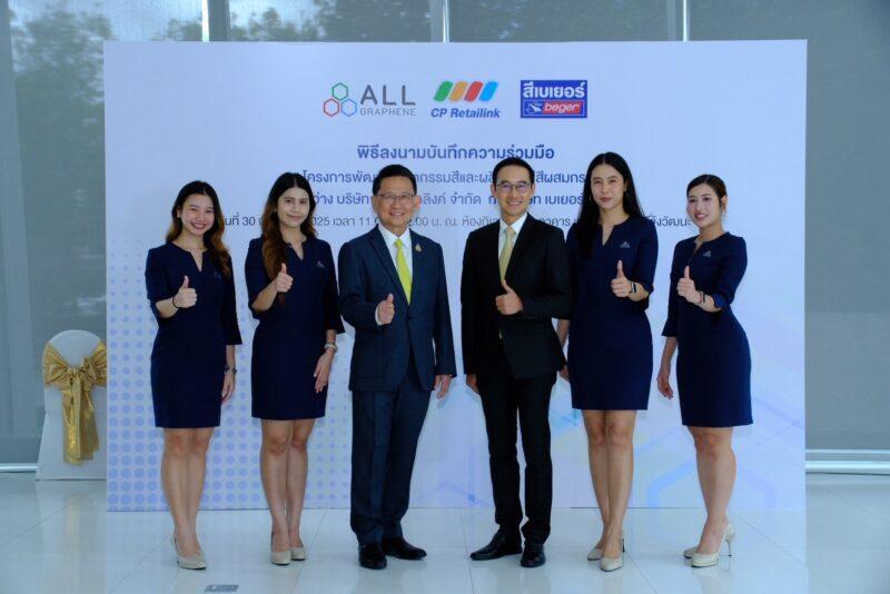 บริษัท เบเยอร์ จำกัด (Beger) ผู้นำด้านนวัตกรรมสีทาอาคารและเคมีภัณฑ์ก่อสร้างของไทย ร่วมกับ บริษัท ซีพี รีเทลลิงค์ จำกัด (CP Retailink) ผู้นำโซลูชันระบบค้าปลีกและผู้พัฒนาวัสดุกราฟีน ลงนามบันทึกข้อตกลงความร่วมมือทางวิชาการ (MOU) เพื่อพัฒนา “Graphene for Paint Technology” นวัตกรรมใหม่สำหรับสีรุ่นใหม่ที่ต่อยอดการใช้วัสดุกราฟีนในอุตสาหกรรมสีและเคมีภัณฑ์ก่อสร้าง ณ ห้องกิเลน ชั้น L เดอะ ธารา แจ้งวัฒนะ