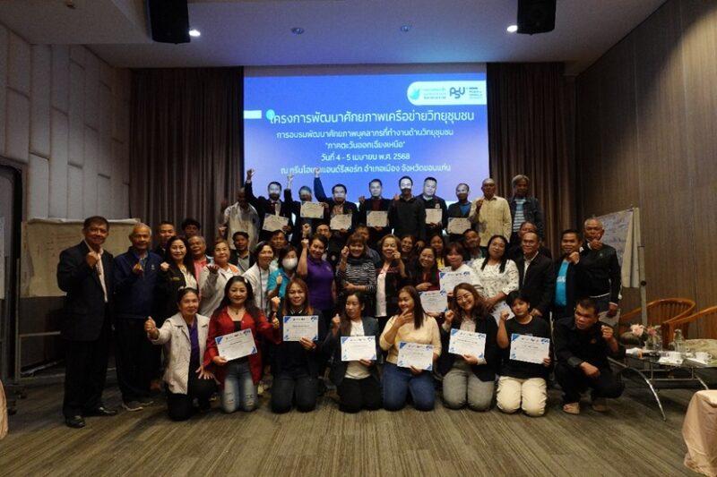 โดยการอบรมพัฒนาศักยภาพบุคลากรวิทยุชุมชนในภาคอีสาน มีเป้าหมายเพื่อสร้างผู้จัดรายการ และผู้สื่อข่าวชุมชนที่มีคุณภาพ สามารถผลิตสื่อที่ปลอดภัยและสร้างสรรค์ พร้อมทั้งทำงานอย่างมี มาตรฐานในยุคดิจิทัล บทบาทของสื่อ ซึ่งจากการอบรมในครั้งนี้ วิทยุชุมชนในพื้นที่ภาคอีสานมีมุมมองว่า สื่อชุมชนต้องสร้างพื้นที่ปลอดภัยและสร้างสรรค์ในสังคม สถานีวิทยุชุมชนแต่ละสถานีควรมีแผนพัฒนา สถานีอย่างชัดเจน และเปิดให้ชุมชนมีส่วนร่วม ส่วนสถานีวิทยุสาธารณะและสถานีวิทยุเพื่อสังคม ควรเน้น การสร้างอัตลักษณ์ วัฒนธรรม และรายได้เพื่อความยั่งยืน โดยที่ผ่านมาพบว่าสถานีวิทยุหลายแห่งในพื้นที่ ภาคอีสาน ประสบปัญหาและความท้าทาย คือขาดกลไกในการถ่ายทอดทักษะสู่คนรุ่นใหม่ จึงจำเป็น ต้องปรับวิธีคิด ให้วิทยุชุมชนเป็นส่วนหนึ่งของการเปลี่ยนแปลงของสังคม ไม่ใช่แค่สื่อกระจายเสียง โดยเฉพาะประเด็นปัญหาในส่วนของมาตรการ กติกา และระบบสนับสนุนที่ยังไม่เข้มแข็ง ขาดการเชื่อมโยงกับภาคธุรกิจ รวมไปถึงการใช้แพลตฟอร์มออนไลน์ ให้ได้อย่างเต็มรูปแบบ ในปัจจุบัน ยังประสบกับปัญหาในการประมูลคลื่นความถี่และการแข่งขันเชิงธุรกิจ ที่ยังเป็นอุปสรรค
