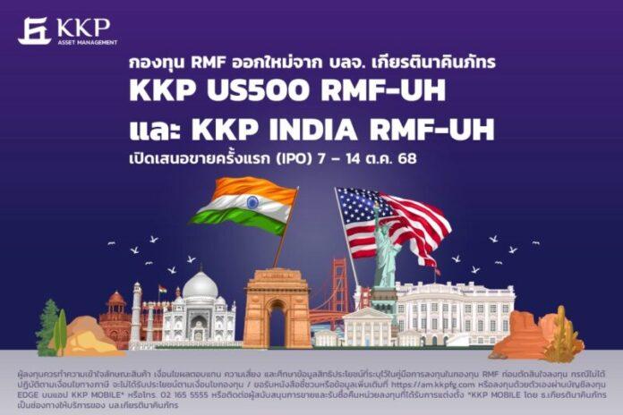 บริษัทหลักทรัพย์จัดการกองทุน เกียรตินาคินภัทร จำกัด (บลจ.เกียรตินาคินภัทร) เปิดตัวกองทุนเพื่อการเลี้ยงชีพ (RMF) ใหม่ 2 กองทุน เพื่อเพิ่มทางเลือกการลงทุนในหุ้นสหรัฐฯและอินเดีย พร้อมสิทธิประโยชน์ทางภาษี ได้แก่ กองทุนเปิดเคเคพี US500 เพื่อการเลี้ยงชีพ – UNHEDGED (KKP US500 RMF-UH) ลงทุนในหุ้นสหรัฐฯขนาดใหญ่ ตามดัชนี S&P500 ครอบคลุม 500 บริษัทชั้นนำของสหรัฐฯ และกองทุนเปิดเคเคพี อินเดีย เพื่อการเลี้ยงชีพ อันเฮดจ์ (KKP INDIA RMF-UH) ลงทุนในตลาดหุ้นอินเดียที่มีแนวโน้มการเติบโตระยะยาวโดดเด่น ทั้งสองกองทุนเปิดเสนอขายครั้งแรกระหว่างวันที่ 7 – 14 ตุลาคมนี้