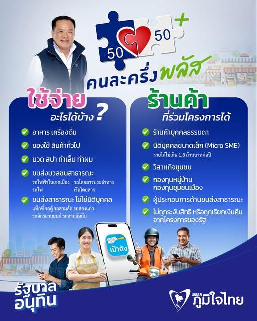 มากกว่าเดิม ทั้งช่วยลดภาระค่าใช้จ่าย และสร้างโอกาสให้ผู้ประกอบการรายย่อยเข้มแข็งขึ้น ประชาชนสามารถใช้จ่ายได้ทั้งอาหาร เครื่องดื่ม ของใช้ทั่วไป รวมถึงบริการขนส่งสาธารณะและบริการรายวันต่างๆ ขณะเดียวกันยังเปิดโอกาสให้ร้านค้าขนาดเล็ก วิสาหกิจชุมชนและผู้ประกอบการรายย่อยทั่วประเทศเข้าร่วมโครงการได้อย่างทั่วถึง