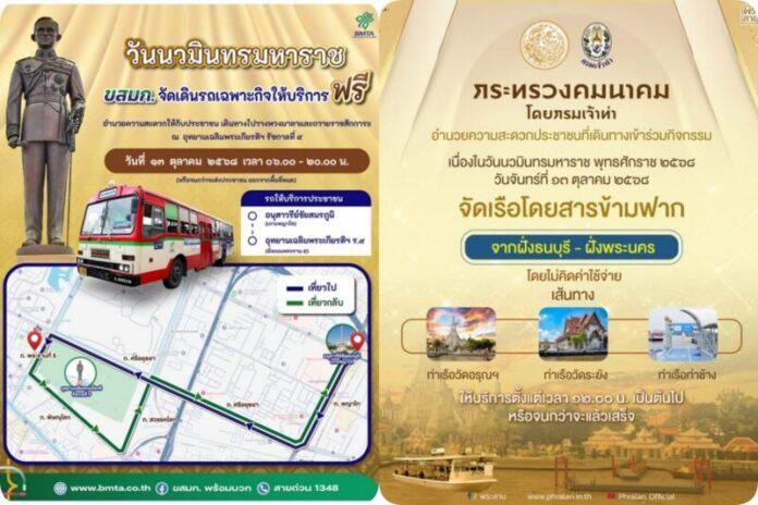 รถ-เรือฟรี สักการะพระบรมราชานุสาวรีย์ “นวมินทรมหาราช” 13 ตุลาคม