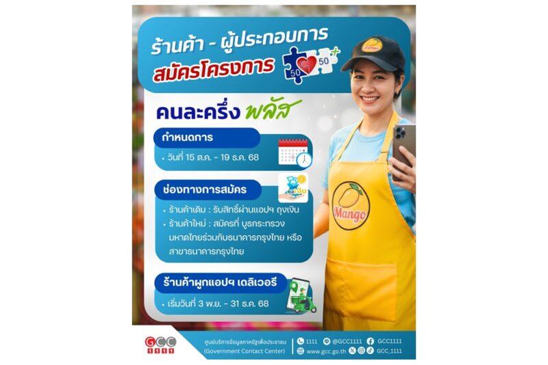 โครงการคนละครึ่ง พลัส จะมีการเปิดลงทะเบียนผู้ประกอบการร้านค้าในวันนี้(15 ตุลาคม 2568) ถึงวันที่ 19 ธันวาคม 2568 โดยมีรายละเอียดประเภทร้านค้า และการลงทะเบียนร้านค้า ดังนี้