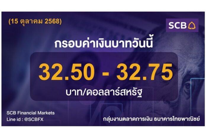 กลุ่มงานตลาดการเงิน ธนาคารไทยพาณิชย์ (SCB Financial Markets) ค่าเงินบาทประจำวันที่ 15 ตุลาคม 2568