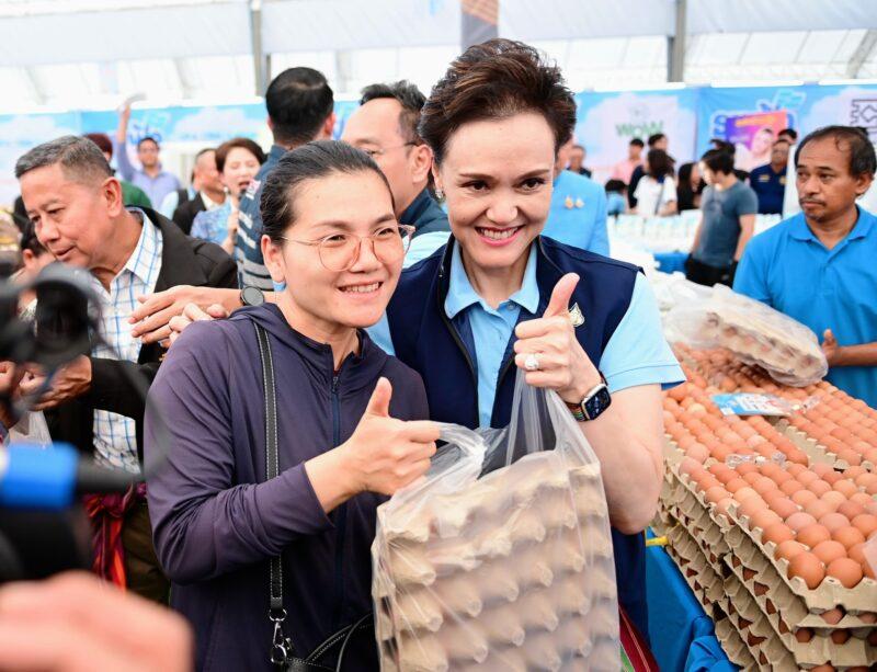 นอกจากนี้ ยังมีสินค้าไฮไลท์ในราคาพิเศษทุกวัน เช่น ไข่ไก่เบอร์ M แผงละ 80 บาท น้ำตาลทรายกิโลกรัมละ 20 บาท น้ำมันพืชปาล์มขวดละ 40 บาท และข้าวหอมมะลิ (5 กก.) ถุงละ 120 บาท รวมถึงสินค้าผลไม้จากกลุ่มเกษตรกรในพื้นที่ นำมาจำหน่ายในราคาช่วยเหลือพี่น้องประชาชน