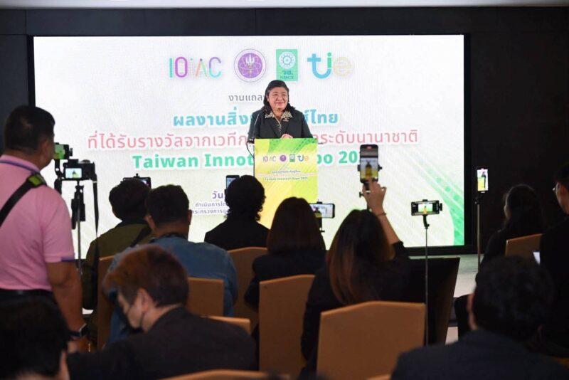 สำนักงานการวิจัยแห่งชาติ (วช.) กระทรวงการอุดมศึกษา วิทยาศาสตร์ วิจัยและนวัตกรรม จัดงานแถลงข่าว “ผลงานสิ่งประดิษฐ์ไทยที่ได้รับรางวัลจากเวทีการประกวดระดับนานาชาติ Taiwan Innotech Expo 2025” (TIE 2025) โดย ดร.วิภารัตน์ ดีอ่อง ผู้อำนวยการสำนักงานการวิจัยแห่งชาติ เป็นประธานในพิธี พร้อมด้วย คณะผู้บริหาร วช. นักวิจัย และสื่อมวลชน เข้าร่วม ณ ศูนย์ข้อมูลสารสนเทศกลางด้านวิทยาศาสตร์ วิจัยและนวัตกรรมของประเทศ วช.