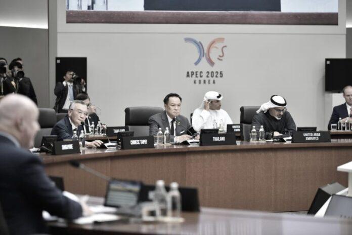 วันที่ 31 ตุลาคม 2568 เวลา 10.00 น. (ตามเวลาท้องถิ่นเมืองคยองจู) นายอนุทิน ชาญวีรกูล นายกรัฐมนตรีและรัฐมนตรีว่าการกระทรวงมหาดไทย เข้าร่วมการประชุมผู้นำเขตเศรษฐกิจเอเปค ครั้งที่ 32 รอบที่ 1 ณ เมืองคยองจู สาธารณรัฐเกาหลี ภายใต้หัวข้อ “Towards a More Connected, Resilient Region and Beyond”