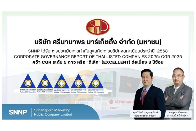 บริษัท ศรีนานาพร มาร์เก็ตติ้ง จำกัด (มหาชน) (SNNP) ได้รับคะแนนการประเมินการกำกับดูแลกิจการในระดับ 5 ดาว หรือ “ดีเลิศ” (Excellent CG Scoring) ติดต่อกัน 3 ปีซ้อน จากโครงการสำรวจด้านการกำกับดูแลกิจการของบริษัทจดทะเบียนไทย ประจำปี 2568 (Corporate Governance Report of Thai Listed Companies 2025 : CGR) จากสมาคมส่งเสริมสถาบันกรรมการบริษัทไทย (IOD) โดยการสนับสนุนจากตลาดหลักทรัพย์แห่งประเทศไทย และสำนักงานคณะกรรมการกำกับหลักทรัพย์และตลาดหลักทรัพย์ (ก.ล.ต.) SNNP ถือเป็นองค์กรภาคเอกชนที่ให้ความสำคัญกับหลักการกำกับดูแลกิจการที่ดี อันเป็นหัวใจสำคัญในการเติบโตอย่างแข็งแกร่งและยั่งยืน ครอบคลุมในทุกมิติเศรษฐกิจ สังคม และสิ่งแวดล้อม (ESG) เพื่อสร้างความเชื่อมั่นให้กับผู้มีส่วนได้เสียทุกกลุ่ม ส่งผลให้ผู้ถือหุ้นมีความมั่นใจในการดำเนินงานของบริษัทฯ และได้นำมาซึ่งความภาคภูมิใจแก่ผู้บริหารและพนักงานของบริษัทฯ ตอกย้ำความเป็นหนึ่งในผู้นำผลิตภัณฑ์เครื่องดื่มและขนมขบเคี้ยวในอาเซียน