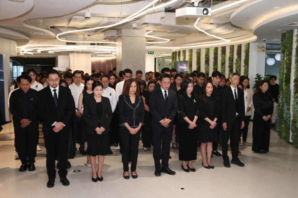 โดยประธานในพิธีได้ลงนาม และนำกล่าวน้อมฯ ถวายความอาลัย พร้อมเชิญคณะผู้บริหารและพนักงานยืนสงบนิ่งเป็นเวลา 93 วินาที เพื่อรำลึกถึงพระมหากรุณาธิคุณอย่างหาที่สุดมิได้ ภายหลังการยืนสงบนิ่ง ประธานในพิธีเป็นตัวแทนพนักงาน วางพวงมาลัยถวายความอาลัยเบื้องหน้าพระฉายาลักษณ์