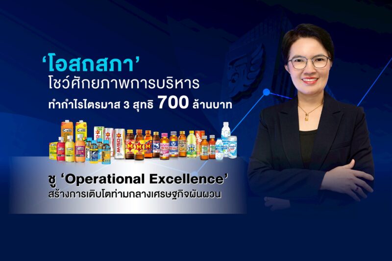 บมจ.โอสถสภา (OSP) รายงานผลประกอบการไตรมาส 3/2568 สามารถรักษาโครงสร้างกำไรในระดับสูงต่อเนื่องแม้อยู่ในภาวะตลาดที่ท้าทาย อัตรากำไรขั้นต้น 38.5% เพิ่มขึ้น 2.4% YoY หนุนกำไรสุทธิส่วนที่เป็นของบริษัท 700 ล้านบาท เพิ่มขึ้น 293.8% YoY และมีกำไรสุทธิจากการดำเนินงานปกติ 700 ล้านบาท เพิ่มขึ้น 4.2% YoY สะท้อนความสามารถการปรับตัวและการบริหารจัดการอย่างมีวิสัยทัศน์ภายใต้กลยุทธ์ Operational Excellence เพิ่มประสิทธิภาพการดำเนินงานและการควบคุมค่าใช้จ่าย พร้อมมุ่งหาโอกาสใหม่ๆ เพื่อขยายธุรกิจและสร้างผลตอบ แทนที่มั่นคงแก่ผู้ถือหุ้นในระยะยาว