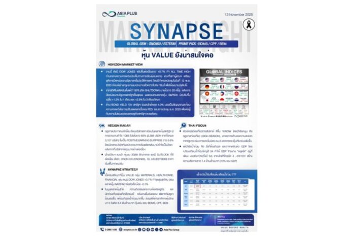 วันที่ 13 พฤศจิกายน 2568 บริษัทหลักทรัพย์ เอเซีย พลัส จำกัด (ASPS) เปิดเผยบทวิเคราะห์ระบุว่า ดัชนี Dow Jones เดินหน้าทำ All Time High อีกครั้ง เพิ่มขึ้นราว +0.7% รับข่าวดีการเมืองสหรัฐฯ หลังสภาผู้แทนราษฎรเตรียมประชุมวันที่ 12 พ.ย. 2025 เพื่อผ่านร่างกฎหมายงบประมาณชั่วคราว ก่อนเสนอให้ประธานาธิบดีทรัมป์ลงนามยุติ Government Shutdown ครั้งประวัติศาสตร์ ข้อมูลย้อนหลังตั้งแต่ปี 1976 พบว่า หลังรัฐบาลสหรัฐฯ กลับมาเปิดทำการ ผลตอบแทนของ S&P500 เฉลี่ย +1.2% ภายใน 1 เดือน และ +2.9% ใน 3 เดือนถัดมา สะท้อนว่าตลาดมักตอบรับเชิงบวกหลังความไม่แน่นอนทางการเมืองคลี่คลาย ขณะเดียวกัน Bond Yield 10 ปี สหรัฐฯ ร่วงใกล้ระดับ 4.0% สะท้อนความคาดหวังว่า FED อาจปรับลดดอกเบี้ยในการประชุมเดือนธันวาคม เพื่อพยุงเศรษฐกิจที่เริ่มชะลอตัว