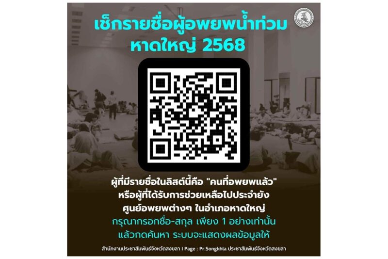 เช็กรายชื่อผู้อพยพน้ำท่วมหาดใหญ่ 2568 เฉพาะผู้ที่เข้าศูนย์พักพิงในอำเภอหาดใหญ่แล้วเท่านั้น