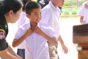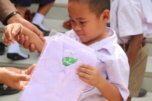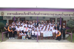โดยมี นางสาวสุปราณี สีนวลน้อย ผู้จัดการทั่วไป บริษัท ซีพี ออลล์ จำกัด (มหาชน) ผู้บริหารร้านเซเว่น อีเลฟเว่น และเซเว่น เดลิเวอรี่ พร้อมด้วยผู้บริหาร ร่วมกันส่งมอบ เสื้อนักเรียนจำนวน 1,100 ตัว โดยมี พล.ต.ต.ถาวร ดุลยวิทย์ ผู้บังคับการตำรวจภูธรจังหวัดสระแก้ว เป็นผู้แทนรับมอบ ณ โรงเรียนตำรวจตระเวนชายแดนบ้านเขาสารภี จ.สระแก้ว