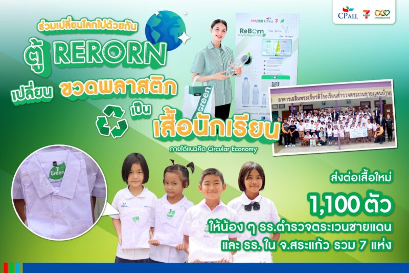โครงการ “Reborn – ตู้รีไซเคิลขวดพลาสติก” เริ่มดำเนินงานในเฟสแรก โดยติดตั้งตู้รับขวดพลาสติกจำนวน 5 ตู้ หน้าเซเว่น อีเลฟเว่น ในพื้นที่กรุงเทพฯ และปริมณฑล เพื่อส่งเสริมการคัดแยกและนำพลาสติก PET สะอาดกลับเข้าสู่กระบวนการรีไซเคิลตามแนวคิดเศรษฐกิจหมุนเวียน (Circular Economy) ตลอดจนสนับสนุนเป้าหมายองค์กรสู่ Carbon Neutrality และ Net Zero Emission