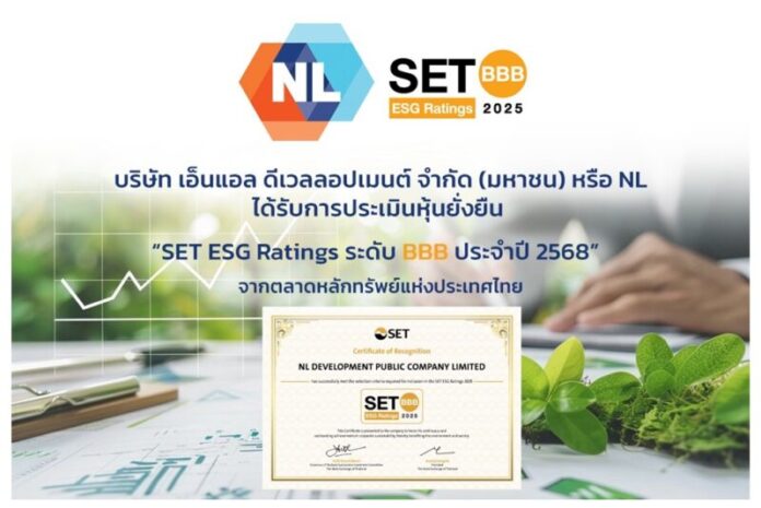 นายศรันย์ โรจน์เลิศจรรยา กรรมการผู้จัดการ บริษัท เอ็นแอล ดีเวลลอปเมนต์ จำกัด (มหาชน) หรือ NL ผู้ดำเนินธุรกิจก่อสร้างครบวงจร แจ้งผลการประเมินได้รับการคัดเลือกให้อยู่ในรายชื่อ “หุ้นยั่งยืน” SET ESG Ratings ระดับ BBB ประจำปี 2568 จากตลาดหลักทรัพย์แห่งประเทศไทย ซึ่งเป็นปีแรกของ NL ที่เข้าร่วมการประเมินดังกล่าวและในปีนี้มีบริษัทจำนวน 265 บริษัท ที่ผ่านเกณฑ์ได้รับการคัดเลือก