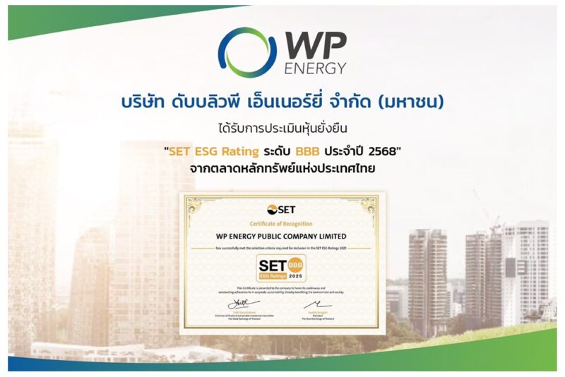 WP รับผลประเมินหุ้นยั่งยืน “SET ESG Ratings ปี 68” ระดับ BBB