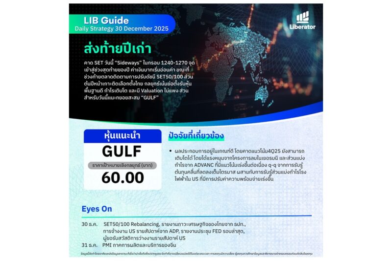 บทวิเคราะห์ “LIB Guide Daily Strategy” ประจำวันอังคารที่ 30 ธันวาคม 2568 หัวข้อ “ส่งท้ายปีเก่า”