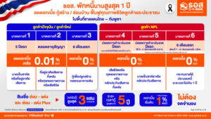 คิดอัตราดอกเบี้ย 0.01% ต่อปี และผ่อนชำระเงินงวดไม่น้อยกว่าดอกเบี้ยรายเดือน และเมื่อผ่อนชำระครบกำหนดแล้ว ให้กลับมาใช้อัตราดอกเบี้ยตามสิทธิเดิมก่อนที่จะใช้มาตรการนี้