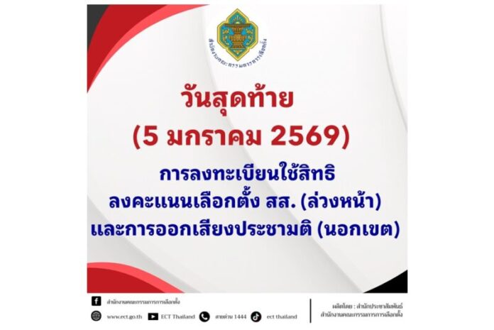 รีบเลยวันสุดท้าย 5 มกราคม 2569 ลงทะเบียนใช้สิทธิลงคะแนนเลือกตั้ง สส.(ล่วงหน้า)-การออกเสียงประชามติ (นอกเขต)